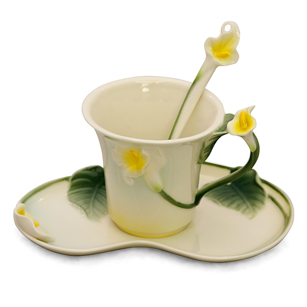 Aparelho em cerâmica com xícara, colher e pires - Linha copo-de-leite