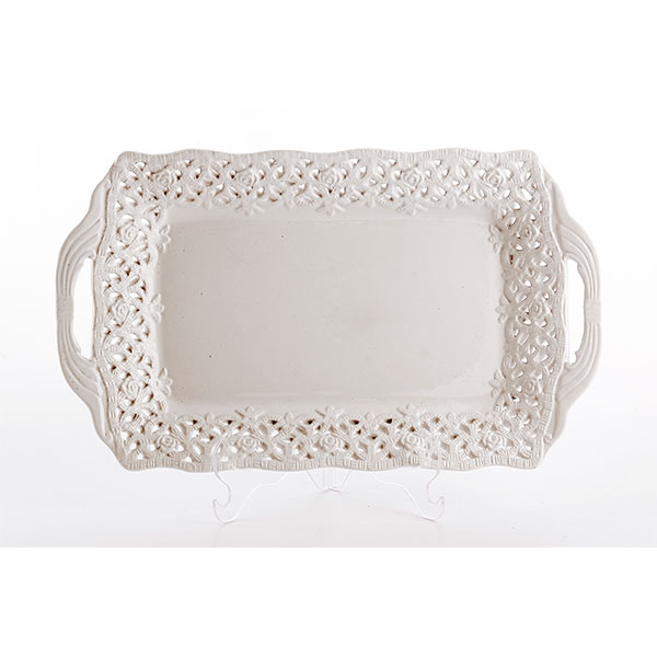 Bandeja com 02 alças rendada Dimensão produto: 36 x 21 x 4 cm Material: Cerâmica