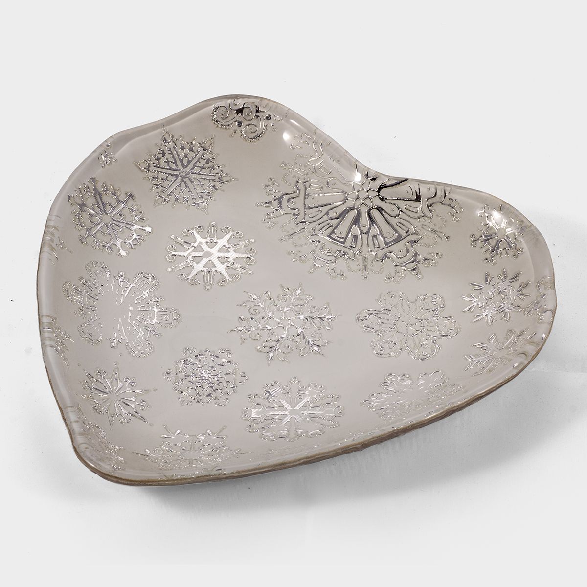 CORAÇÃO BRANCO PRATA VERDADEIRA EM VIDRO