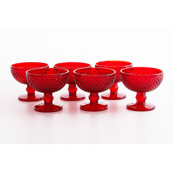 Jogo 06 taças bico de jaca vermelha Capacidade: 220 ml Material: Vidro