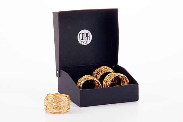 Jogo com 4 argolas magnus trançada ouro para guardanapo Diâmetro: 3 cm | Altura: 3 cm Material: Metal