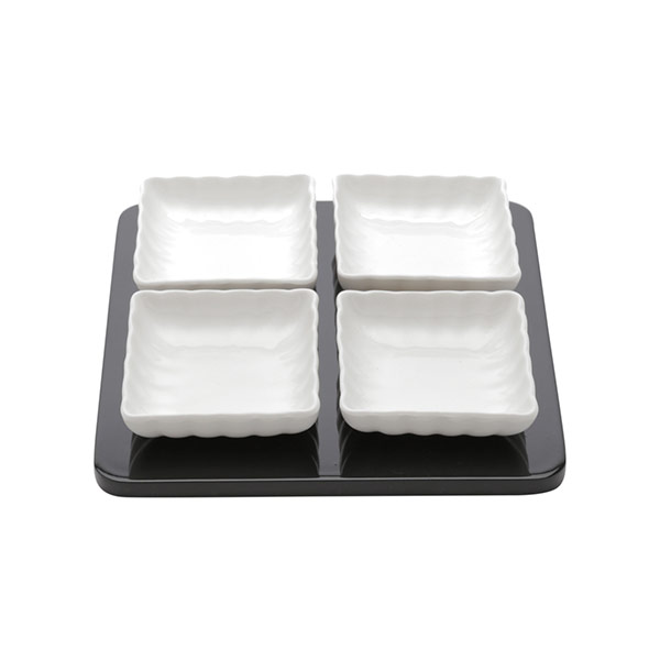 Suporte de madeira com 4 bowls porcelana 20x20x4cm